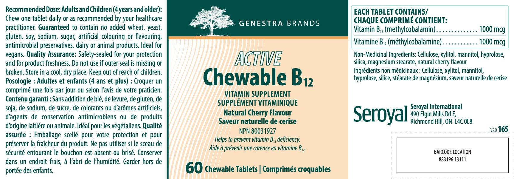 ACTIVE Chewable B12 supports red blood cell formation and macronutrient metabolism with a concentrated dose (1,000 mcg) of methylcobalamin, the body's most compatible active form of vitamin B12. Vitamin B12 deficiency is one of the most common causes of nutrient-related anemia, particularly among adults 65 and older, where an estimated 11% of cases of B12-related anemia occur.