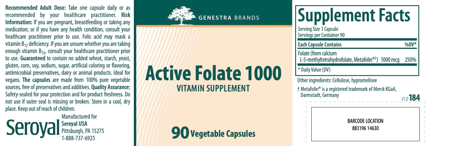 Active Folate 1000 provides 1,000 mcg per day of folate from Metafolin®, a pure bioavailable, physiologically active form of folate found naturally in foods. Folate acts primarily in cell division and is necessary for the synthesis of nucleotides and red blood cells. Folate requirements increase during pregnancy due to cell division and metabolism necessary for healthy placental and fetal development. Unfortunately, approximately 20% of Canadian women of childbearing age do not achieve the recommended amount of folate for pregnancy. Supplementation has been shown to be the most effective method of increasing folate levels and has been shown to provide superior results to ingestion of food. Daily supplementation of 400 mcg of folic acid during the first trimester of pregnancy helps reduce the risk of neural tube defects by approximately 50%. However, a daily intake of 800 mcg could reduce the risk by almost 70%.