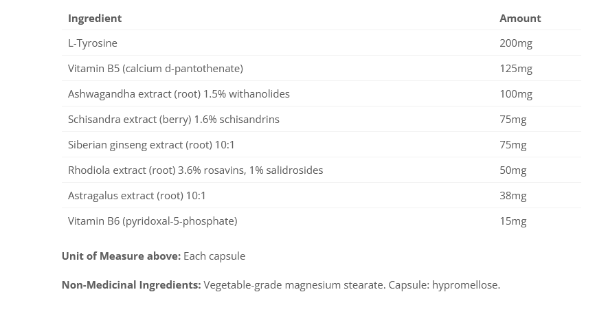 - Powerful extracts of adaptogenic herbs with L-tyrosine and active vitamin B cofactors.