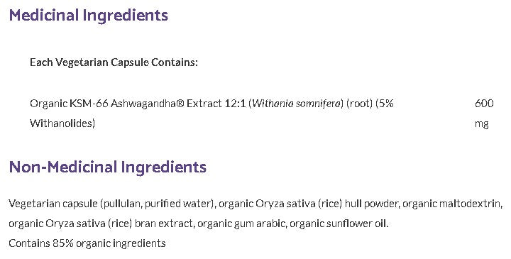 - Provides 600 mg per capsule of proprietary, clinically studied organic Ashwagandha™ KSM-66 extract.