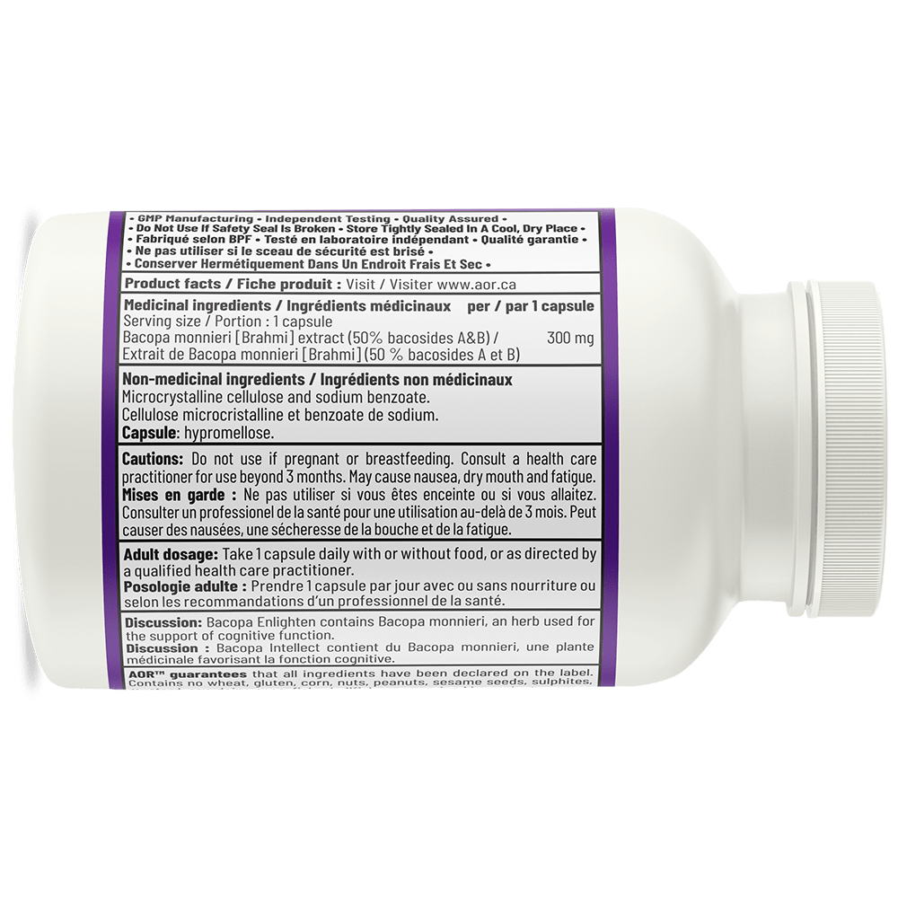 Bacopa Intellect is a standardized extract of Bacopa monnieri, an herb used in traditional Ayurvedic medicine to support cognitive function and memory. Bacopa is used in India as a “brain stimulant”; Vedic scholars would also have used it to promote the memorization of hymns and sacred texts.