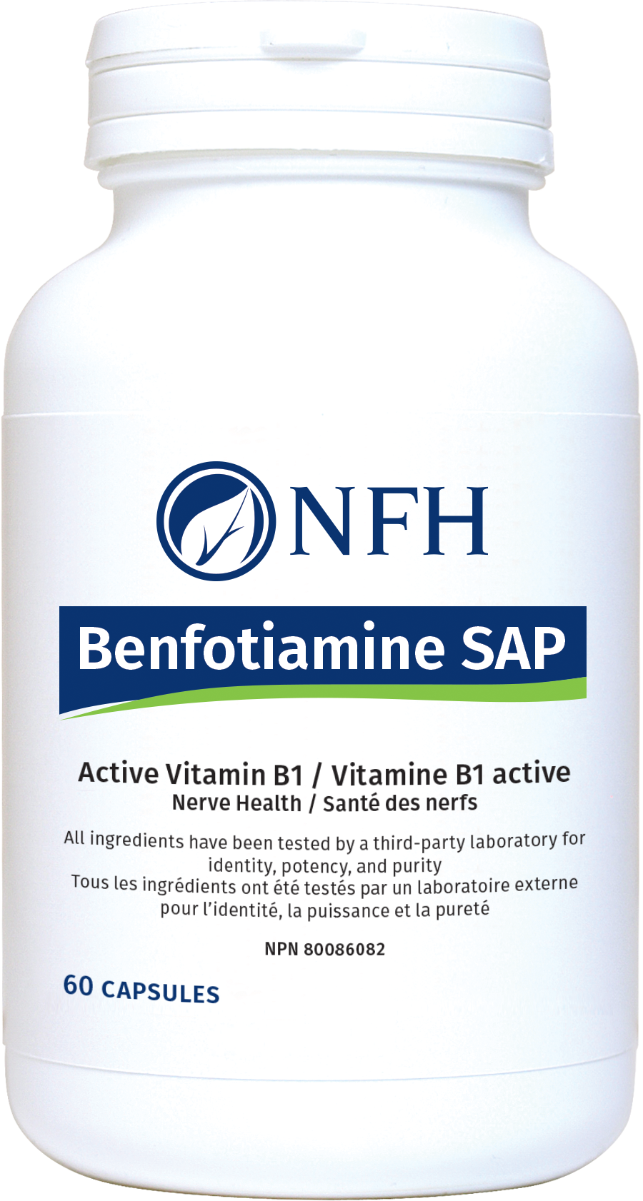Benfotiamine is a synthetic form of thiamine, or vitamin B1, which is highly bioavailable and has been shown to have beneficial health effects. It is commonly used to support nerve function and reduce symptoms of diabetic neuropathy by improving the body's ability to produce energy and reducing oxidative stress. Benfotiamine has also been shown to improve glucose metabolism, reduce inflammation, and protect against diabetes-related complications. Additionally, some research suggests that benfotiamine may have neuroprotective properties and play a role in maintaining cardiovascular health. Overall, Benfotiamine SAP is a promising supplement that may contribute to nerve health, blood sugar regulation, and overall well-being.