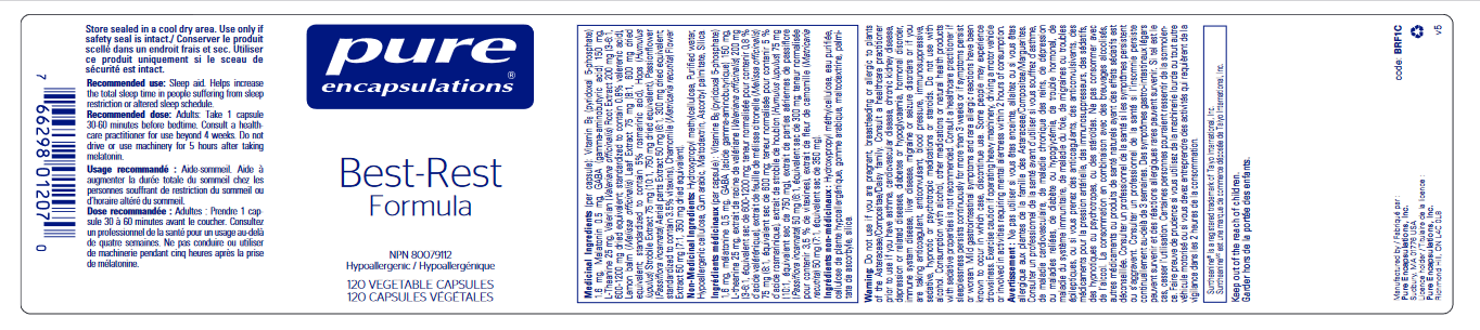 Best-Rest Formula promotes sleep quality and a healthy sleep cycle by encouraging a smooth transition to sleep and a restful night's sleep. This unique blend contains valerian, passionflower, chamomile, lemon balm and hops, which are traditionally used in herbal medicine. Double-blind trials involving valerian alone and in combination with other herbs have indicated its potential to support both sleep onset and sleep quality. Best-Rest Formula also includes melatonin and GABA. Melatonin is a hormone produced by the pineal gland. It is synthesized in the circadian rhythm by enzymes, which are activated by darkness and weakened by light. GABA is the main inhibitory neurotransmitter in the brain and l-theanine is a bioactive compound in green tea. Suntheanine® is a registered trademark of Taiyo International, Inc.