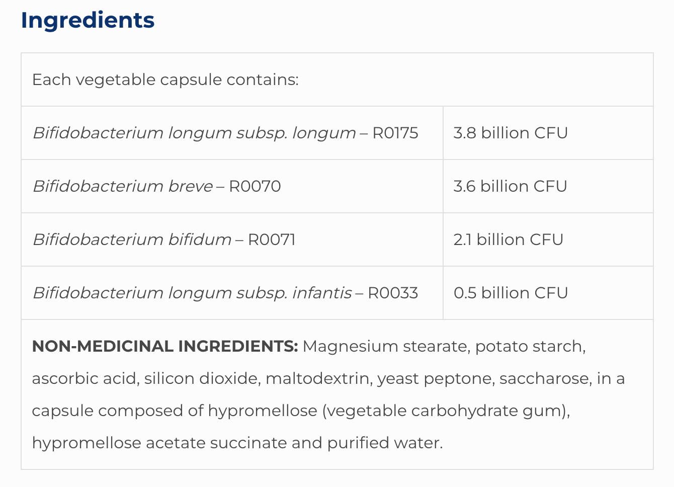 - Bifidobacterial probiotic for gastrointestinal health (science-based)