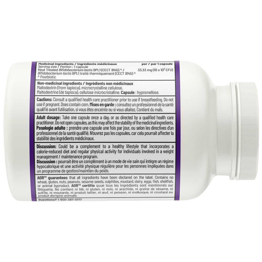 Boost Postbiotic contains heat-treated Bifidobacterium lactis, BPL1®. BPL1® has been shown to promote healthy weight management, demonstrating positive effects on metabolic markers of health including waist circumference reduction and visceral fat reduction in animal models and human clinical trials. Reducing visceral fat has been associated with reduced cardiovascular risk. BPL1® helps improve satiety while providing powerful antioxidant and anti-inflammatory effects. Those looking to support their weight management efforts alongside a healthy diet and regular exercise can benefit from Postbiotic Boost.