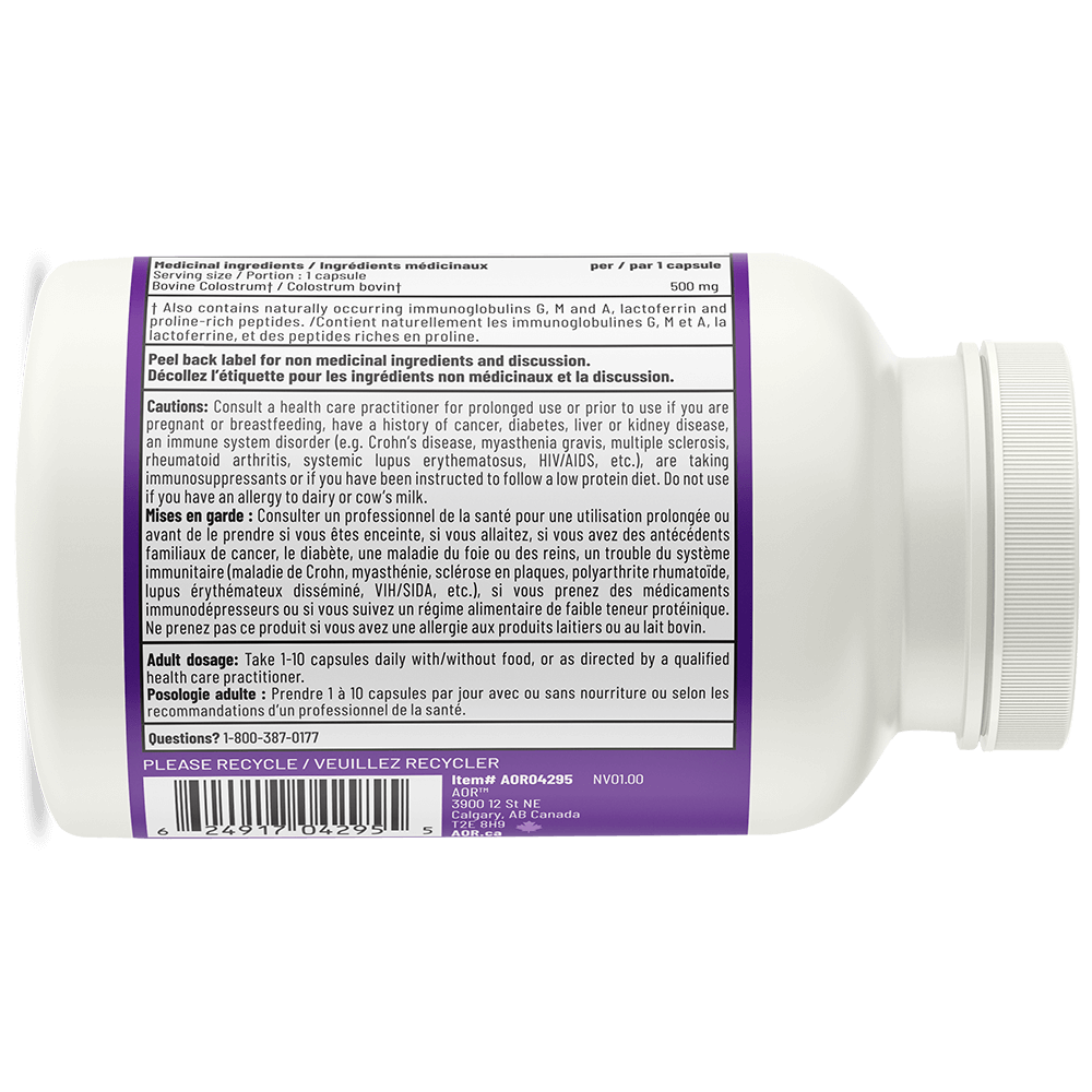AOR All-Life Colostrum comes from North American cattle raised in the best conditions and processed under the most rigorous quality control, to ensure optimal purity and potency. It is processed and packaged within twelve hours of its collection from dairy cows. Colostrum obtained in cold climates is of better quality, since bad winter weather leads to an increase in the production of factors that support the immune system in cows, compared to that obtained in temperate climates. All-Life Colostrum contains 30% immunoglobulin G (IgG), almost double the amount found in other products on the market. All-Life Colostrum has been purified, but contains traces of lactose; it has been freeze-dried to preserve the biological activity of its specific proteins.