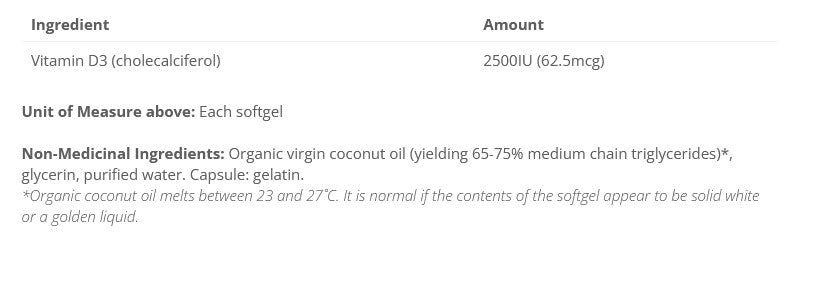 Cyto-D3 2500IU - capsule is designed to help prevent vitamin D3 deficiency. Each capsule provides 2500 IU of stable vitamin D3 in an organic coconut oil base to promote optimal absorption and bioavailability.