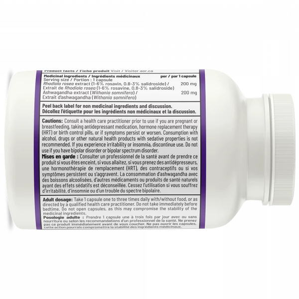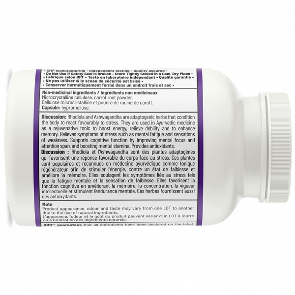 - Contains the adaptogenic plants rhodiola and ashwagandha
