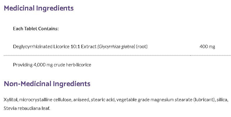 - Offers 400 mg of DGL per tablet, the clinically effective dose.
