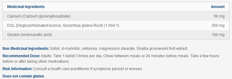 - Chewable deglycyrrhizinated licorice, fast-acting, to support the gastric mucosa.