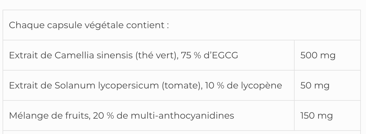 - Ultra antioxidant from green tea, berries, grapes and tomatoes (based on science)