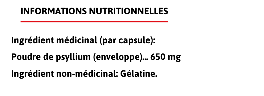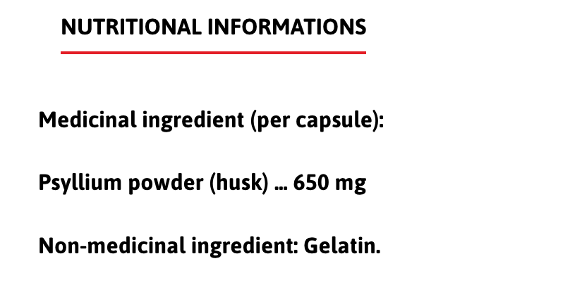Each capsule contains 650 mg of selected, very high quality psyllium husks.