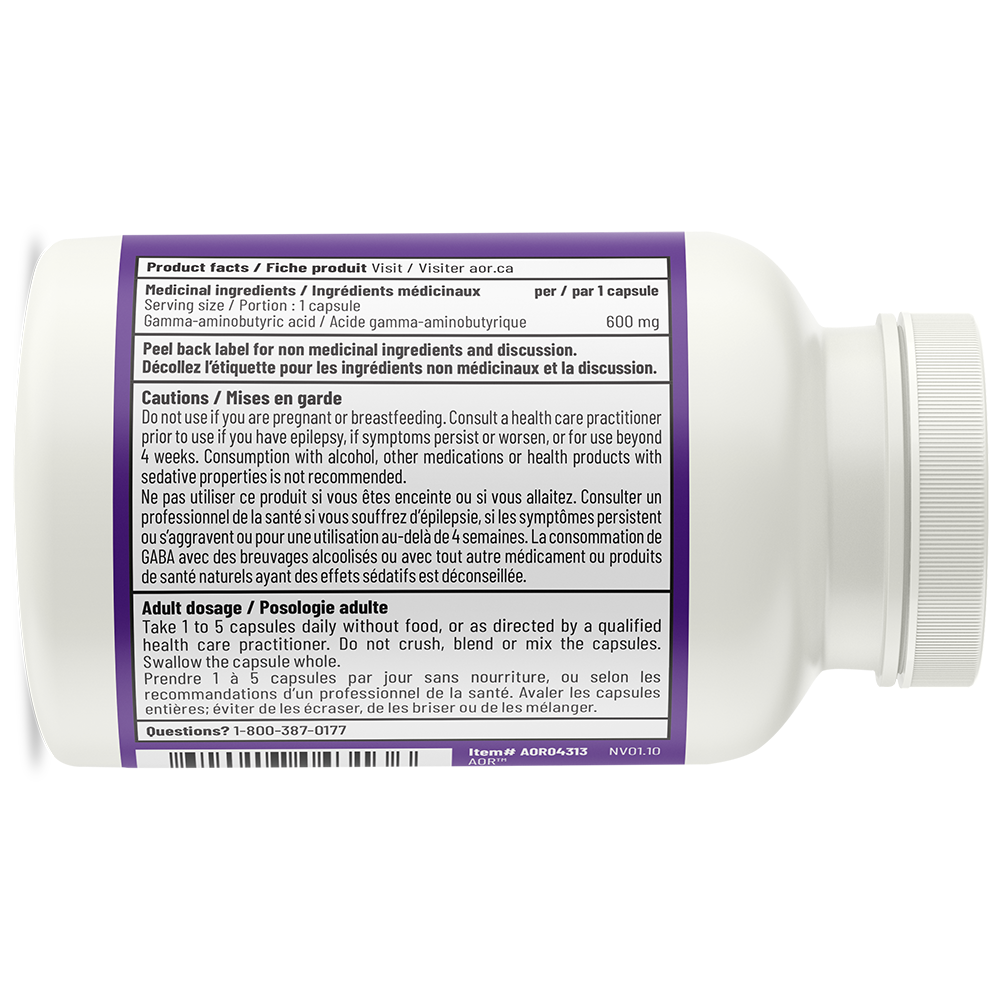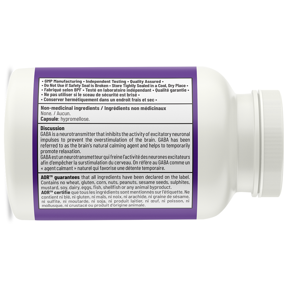 GABA is a naturally produced neurotransmitter present in the body; it offers a safe alternative to medications for anxiety disorders. Anxiolytics like benzodiazepines can become addictive, a risk that does not exist with GABA supplementation. AOR's GABA™ formula provides 600 mg of pharmaceutical grade gamma aminobutyric acid, with a purity level of over 99%.
