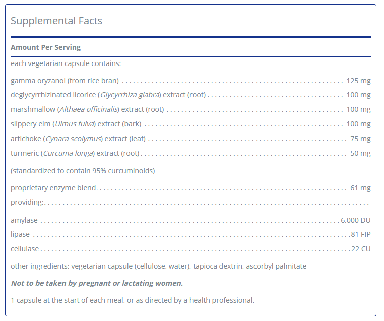 Heartburn Essentials is designed to maintain healthy gastric secretion, support digestion and soothe the digestive tract to relieve heartburn due to gastritis. It includes deglycyrrhizinated licorice which helps soothe the digestive tract and promote the integrity of the mucous lining. Deglycyrrhizinated licorice also supports the body's natural defense mechanisms by stimulating the mass, quality and production of mucus, an important part of the protective lining of the stomach. Plant enzymes promote digestive function for optimal bioavailability and assimilation of nutrients. This product also contains gamma-oryzanol as well as artichoke, turmeric, marshmallow and slippery elm, which are known for their important roles in herbal medicine.