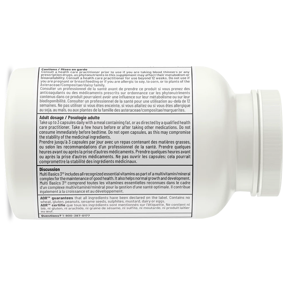 AOR Multi Basics 3® saves you from the pitfalls of poorly formulated products: it does not use excessive and harmful amounts of ingredients, contains vitamin complexes that are balanced and in quantities reflecting biological needs, and superior forms that are assimilated more efficiently are a priority. Most importantly, Multi Basic 3® provides nutrients in amounts reflective of those found in optimal diets that have been shown to have a positive impact on health.
