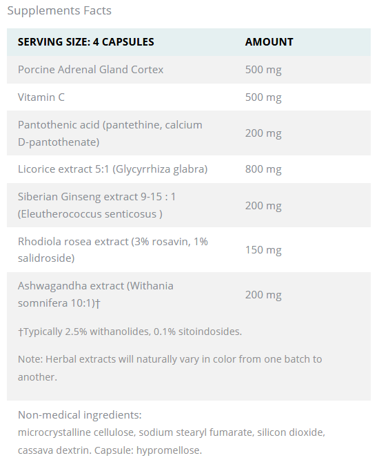 AOR's Ortho Adapt targets adrenal support from three angles, including adrenal extract to meet all adrenal needs, orthomolecules to prevent key coenzyme deficiencies, and adaptogenic plants to modulate the stress response. AOR uses whole licorice extract, as opposed to deglycyrrized licorice extract, since it is the glycyrrhizin in licorice that is beneficial for the adrenals. Ortho Adapt is also available in a vegan formula, without glandular extract.