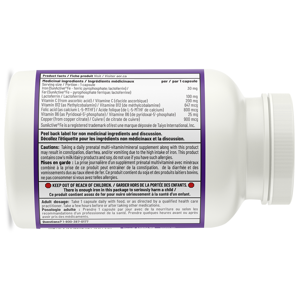 Ortho Iron contains SunActive®, a superior form of iron that has been shown to be better absorbed and much better tolerated than other iron products on the market. SunActive® contains ferric pyrophosphate, a type of iron that has been processed to reduce particle size for better absorption and is bonded to a food-grade emulsifier to prevent clumping. These two factors give it a bioavailability equal to that of pharmaceutical grade iron. Ortho Iron also contains several other nutrients that promote iron absorption and prevent the oxidative effects associated with iron supplementation. These include vitamins C, B6, B12, folate, lactoferrin and copper, all of which are essential for the absorption and use of iron.