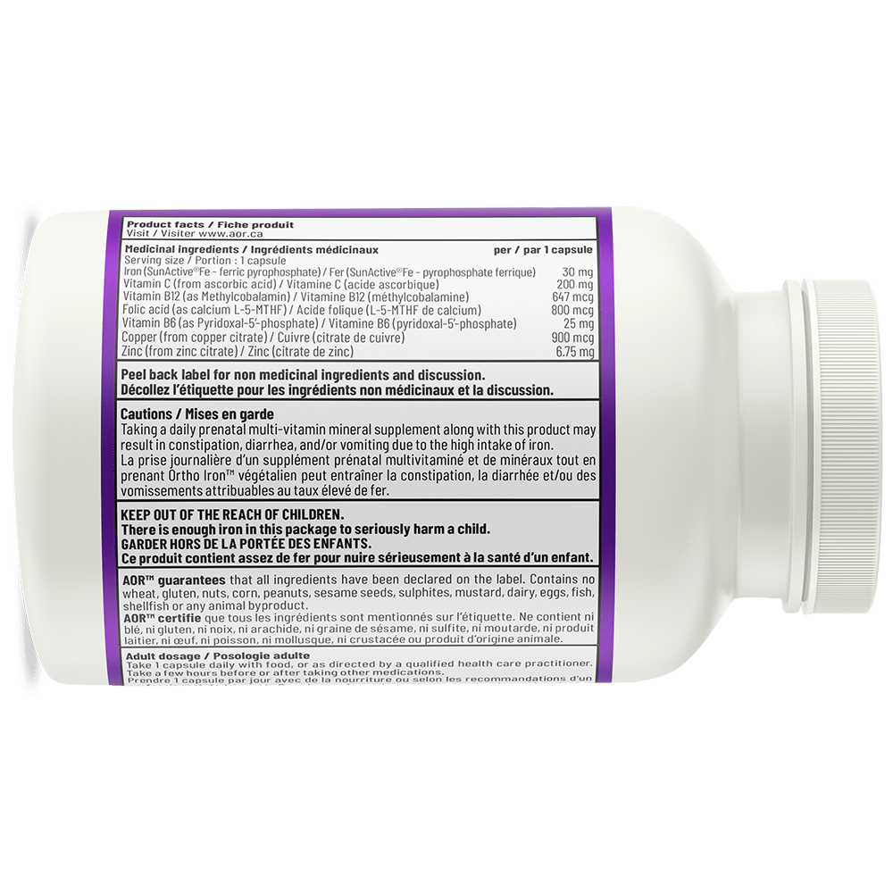Ortho Iron Vegan is a vegan, lactoferrin-free version of Ortho Iron, AOR's award-winning iron formula. It contains synergistic nutrients necessary for proper iron absorption and is useful for the treatment of iron deficiency anemia. Ortho Iron Vegan is well tolerated and does not tend to cause side effects common to iron supplements like nausea or constipation.