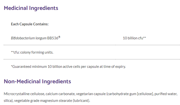 - High potency: 10 billion CFU (colony forming units) of Bifidobacterium longum BB536 per capsule