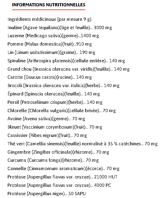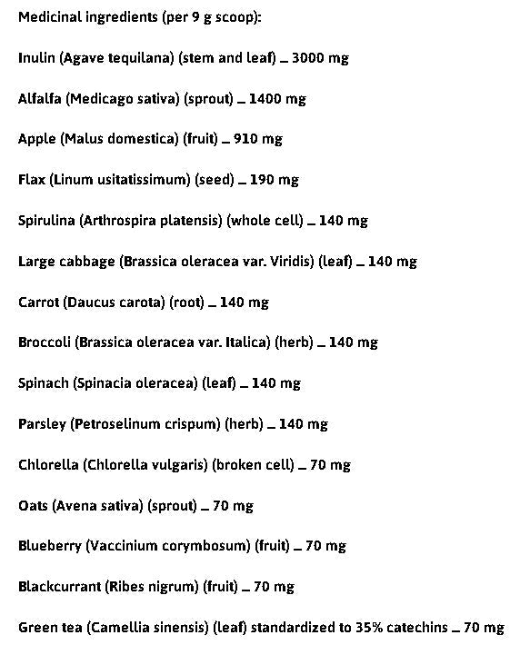 Blend of ingredients rich in phytochemicals. Taking this formula is ideal during a diet low in vegetables & fruits.