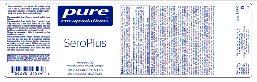 SeroPlus was created by Pure Encapsulations in collaboration with Dr. James Greenblatt as part of the Integrative Mental Health Series, a line of products based on scientific discoveries and decades of clinical experience. SeroPlus contains 5-HTP to support healthy mood balance by providing essential serotonin. By helping to form serotonin, 5-HTP balances serotonin activity in the brain, promoting emotional well-being. Another key element of each formulation in this series: the inclusion of cofactors such as vitamin B6, zinc and Metafolin® L-5-MTHF. L-5MTHF is a form of folate that easily crosses the blood-brain barrier. These nutrients are often present in insufficient amounts due to medication use, inadequate diets, and exposure to toxic environments, all of which compromise the ability to metabolize nutrients effectively. Along with zinc, vitamin B6 is a cofactor in amino acid metabolism, including the metabolism of 5-HTP to serotonin.