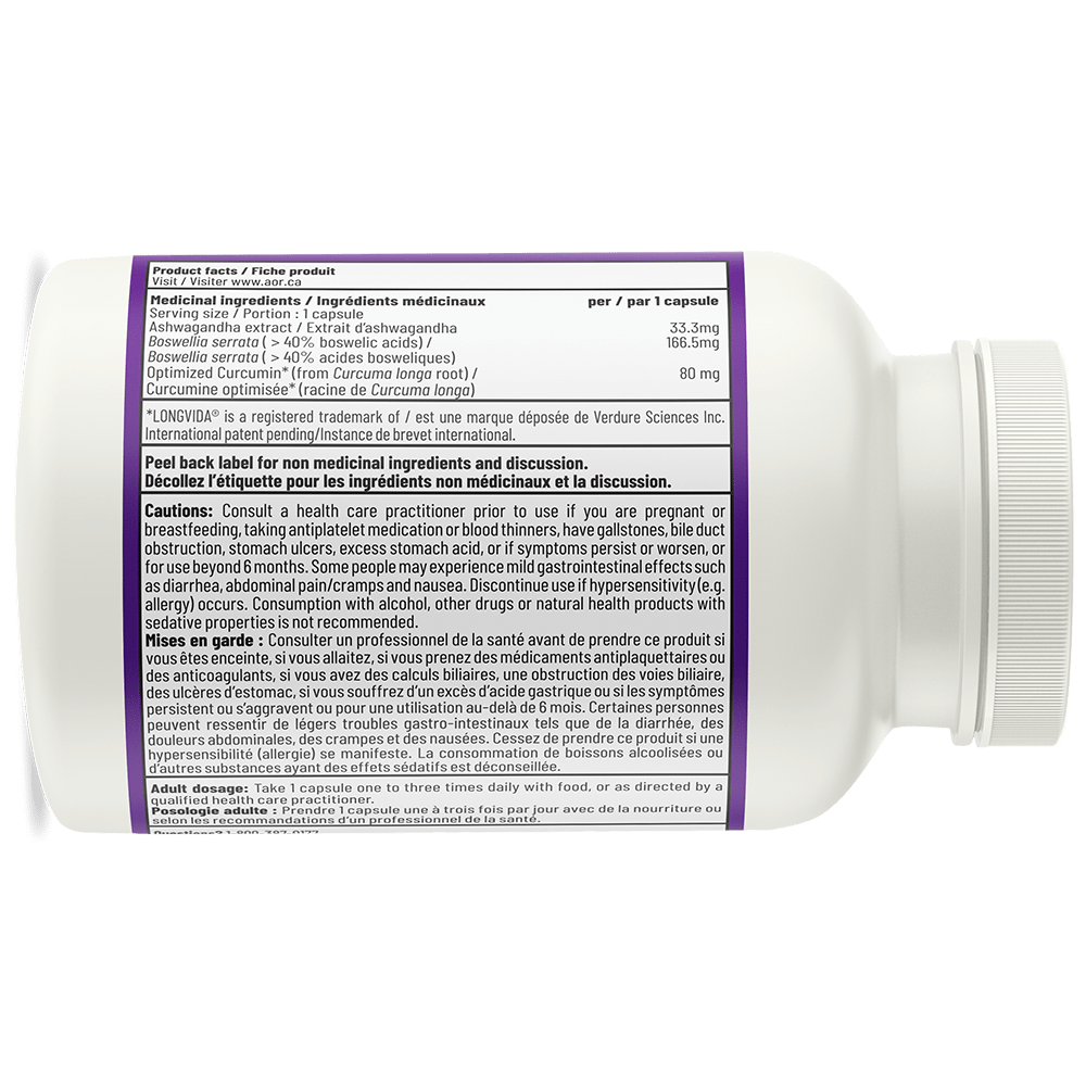 Although the anti-inflammatory properties of curcumin, boswellia, and ashwagandha have been widely studied, none of them are easily absorbed by the body. AOR Inflammation Relief contains extracts of these plants, enhanced through an industrial process forming tiny micellar particles, small enough to easily penetrate the intestinal wall, as well as the blood, thus significantly improving their absorption and bioavailability.